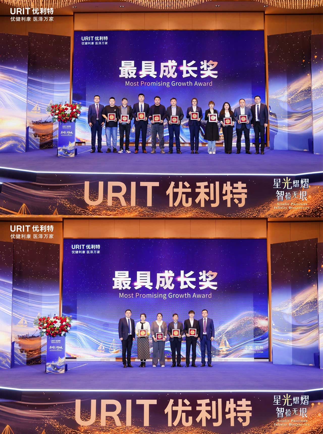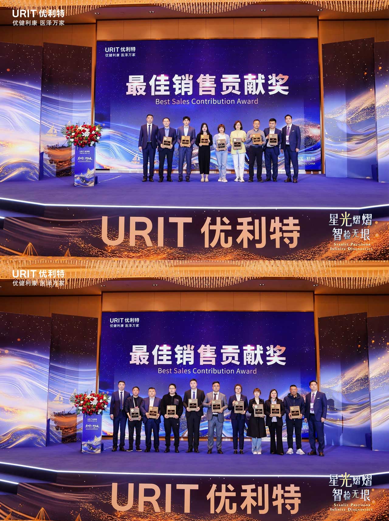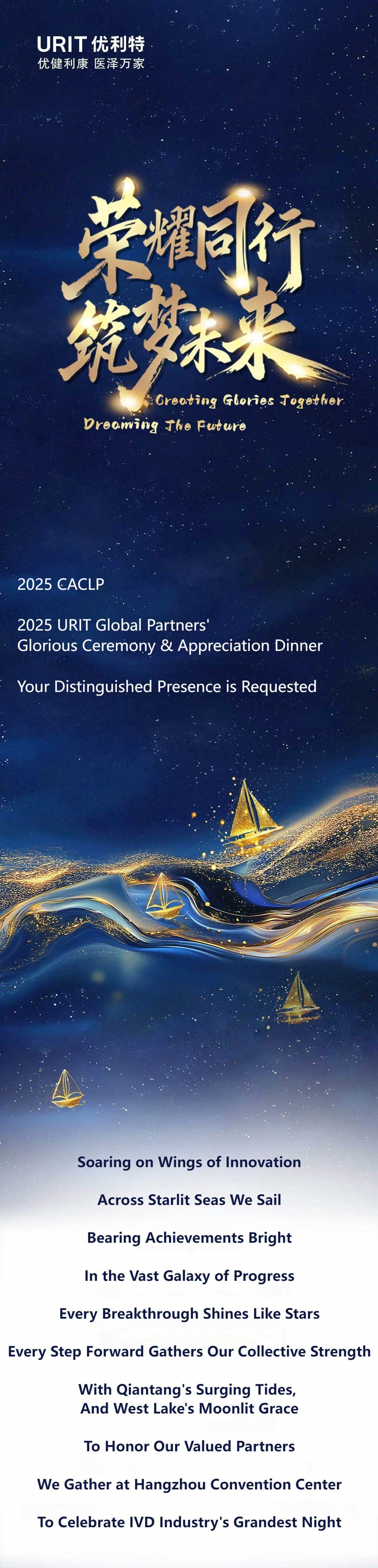 Capture the Moment, Define the Trend. Step before our exquisitely designed backdrop - with just one 'click', your dazzling moment becomes eternal. As you enter the banquet hall, you're transported into the heart of a galaxy. Crystal chandeliers shimmer like constellations overhead, while guests leave their luminous imprints. Thus begins URIT's grand celebration for 300+ global partners at 2025 CACLP - where every snapshot becomes a stellar memorial of this glorious gathering.